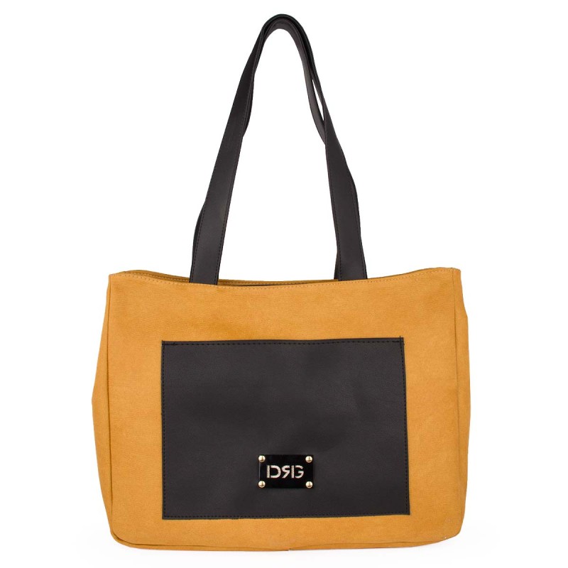 Large Ocher Shoulder Bag, made of ecological leather with absorbent and breathable leather lining. It has 3 internal pockets, one with
